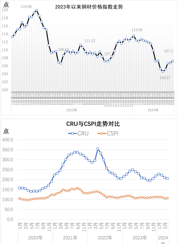 5月6日—5月11日當周,國內鋼材價格指數連續第4周回升。長材價格指數、板材價格指數均有所回升。