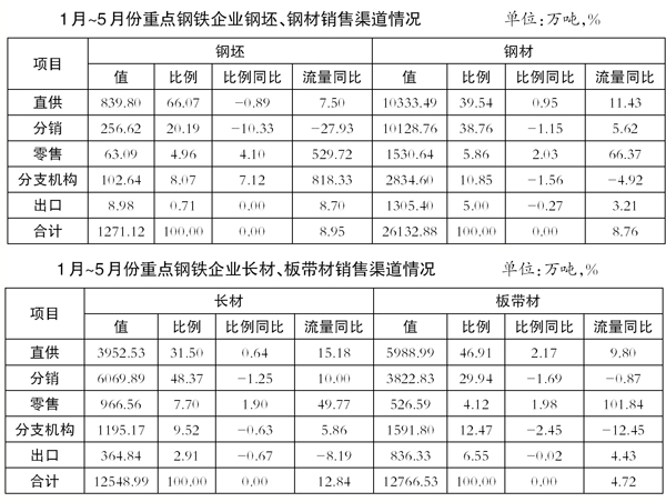 ——1月~5月份重點鋼鐵企業鋼材營銷統計分析