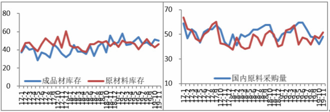 11月份成品材庫存指數為50.2%,環比下降1.2%。根據Mysteel統計,11底,五大品種全國社會庫存為757萬噸,較10月底下降181萬噸,較去年減少65萬噸。11月底Mysteel統計的五大品種鋼廠庫存為410萬噸,較10月底下降104萬噸,較去年同期減少72萬噸。隨著行業經營者主動去庫存行為增加,市場庫存得到快速消化,並低位繼續消化,促使庫存已明顯低於去年同期,“護航”鋼價觸底反彈。