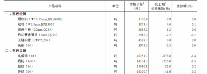 統計局:2020年1月下旬有色金屬小幅下跌 黑色金屬基本穩定