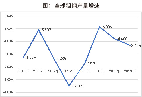 據世界鋼協統計,2019年,全球粗鋼產量達到18.699億噸,同比增長3.4%,同比增速出現三連降。2019年,除亞洲和中東地區外,其他地區的粗鋼產量同比均下降。
