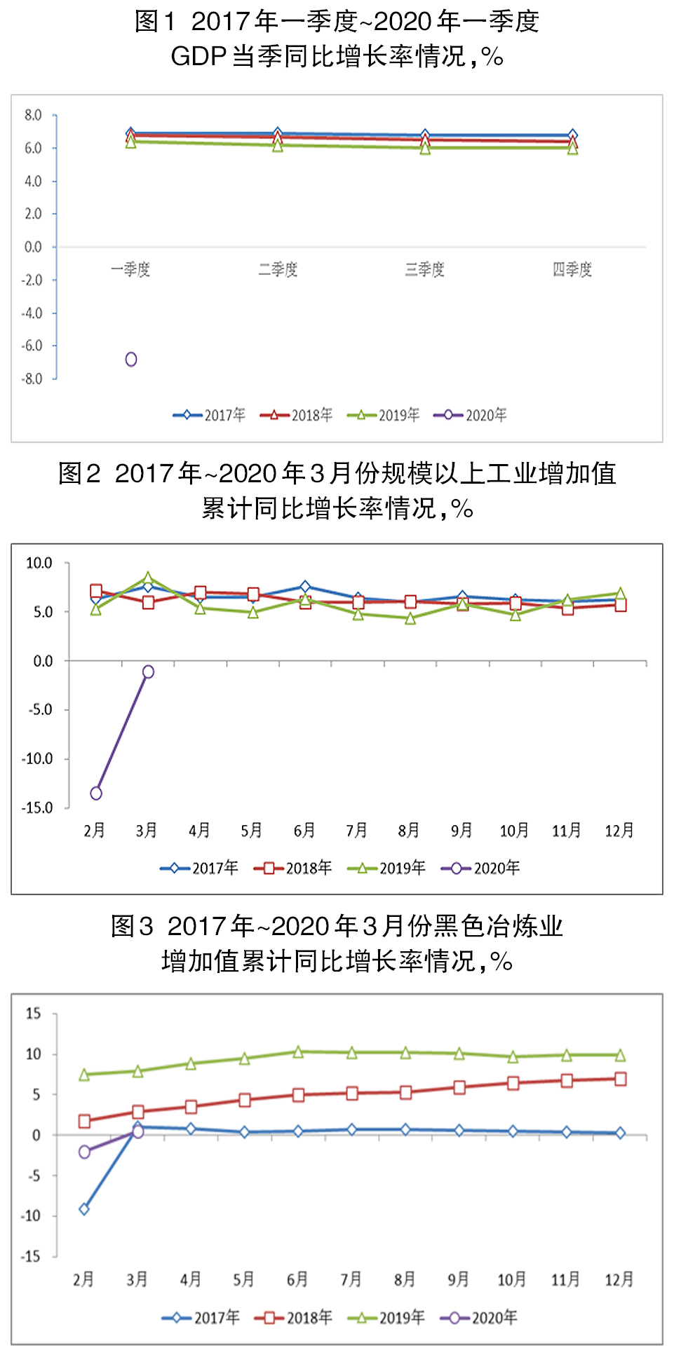 2020年第一季度,GDP為20.65萬億元,按可比價格計算,同比下降6.8%,環比下降9.8%,GDP增速創曆史新低,當前經濟下行程度遠超2003年“非典”時期和2008年全球金融危機時期。總體看,第一季度國民經濟受疫情衝擊影響較為顯著,工業經濟大幅下滑,但降幅環比前2個月收窄,逐步向好趨勢沒有改變。