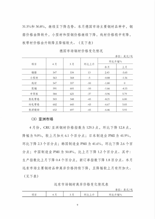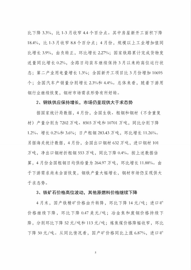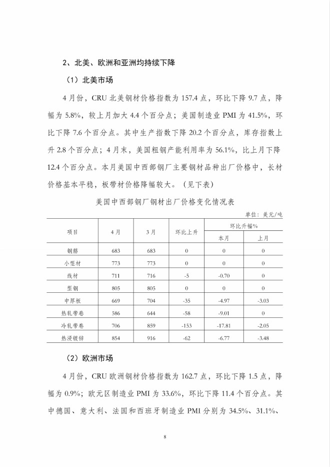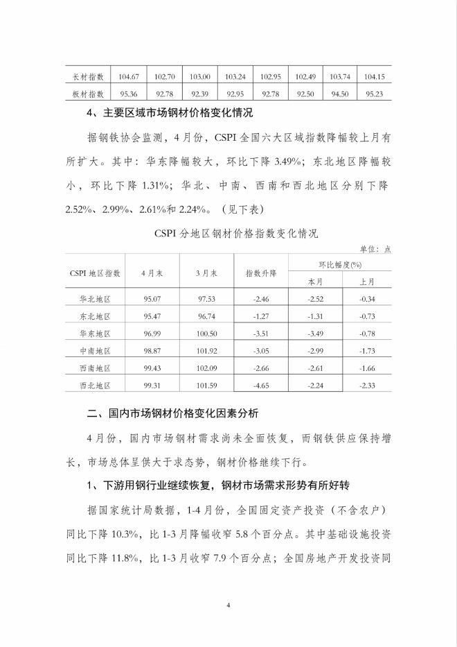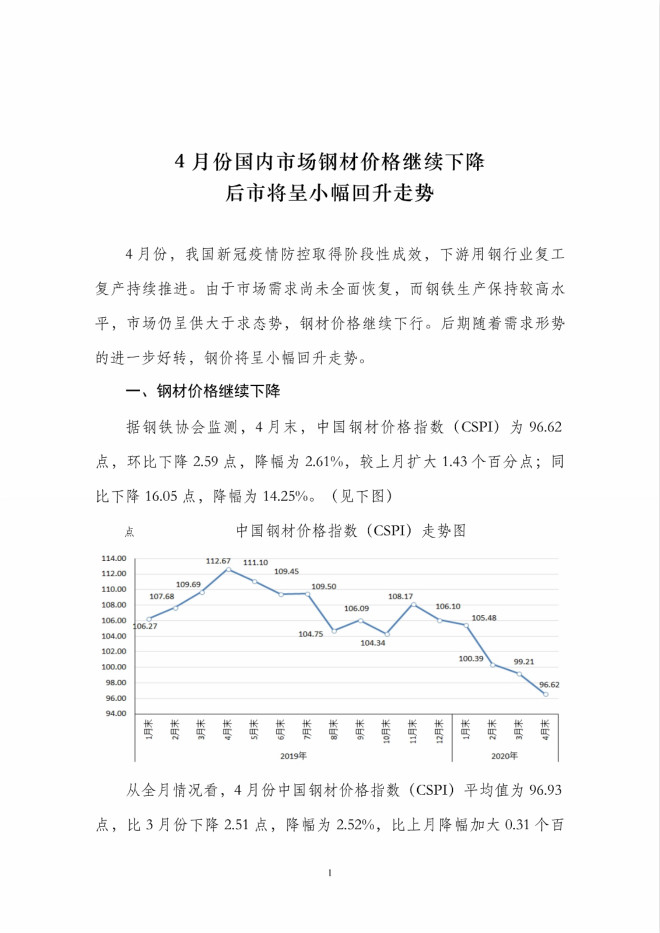 4月份國內市場鋼材價格繼續下降,後期將呈小幅回升走勢