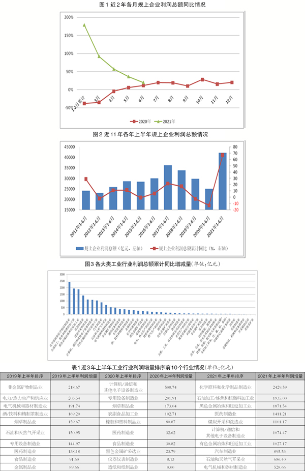 2021年上半年工業利潤增長主要由化工醫藥製造業、材料製造業、采礦業3類工業行業拉動