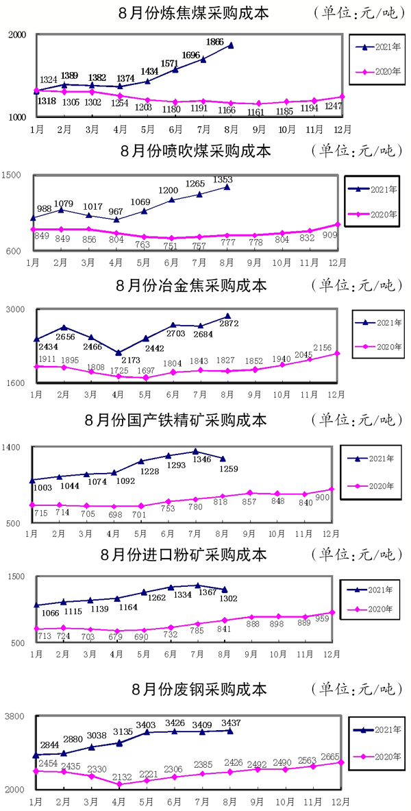 ——8月份對標挖潛企業主要原燃材料采購成本分析
