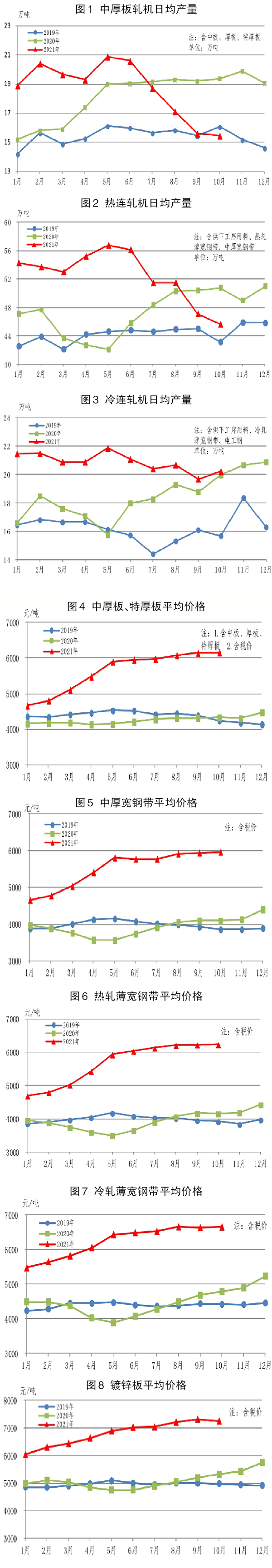 10月份,重點統計企業生產中厚寬鋼帶585萬噸,同比減少104萬噸,下降15.1%;銷售573萬噸,其中出口8萬噸,產銷率為97.9%;均價為5966元/噸,比9月份上漲21元/噸。
