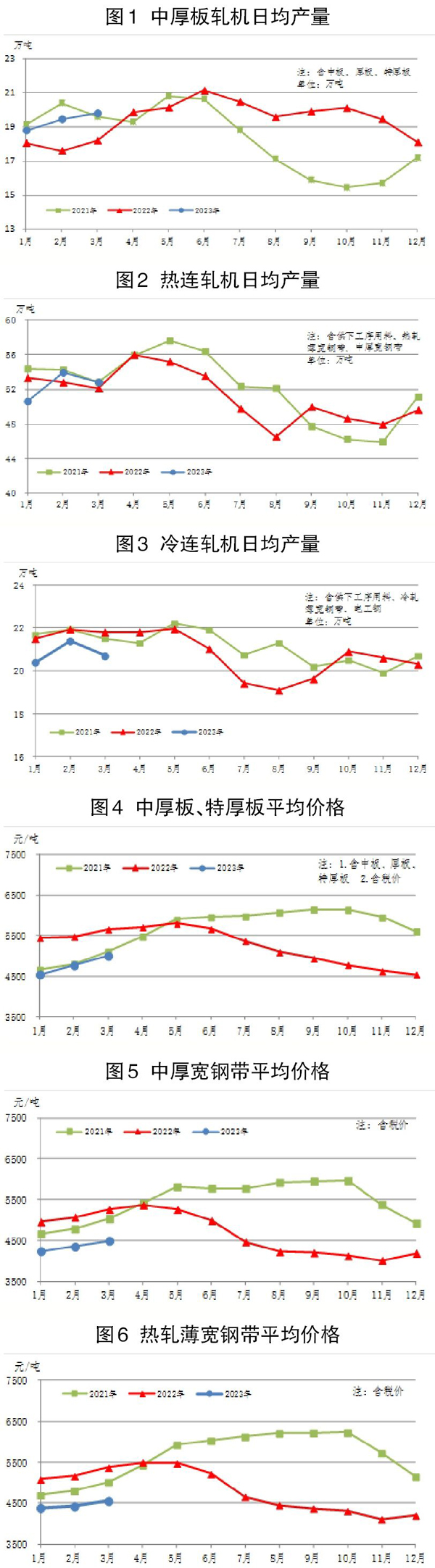 3月份,中厚板軋機、熱連軋機產量環比、同比上升;冷連軋機產量環比上升、同比下降。主要品種板中,管線鋼板產量同比增幅較大,集裝箱板產量連續大幅下降。
