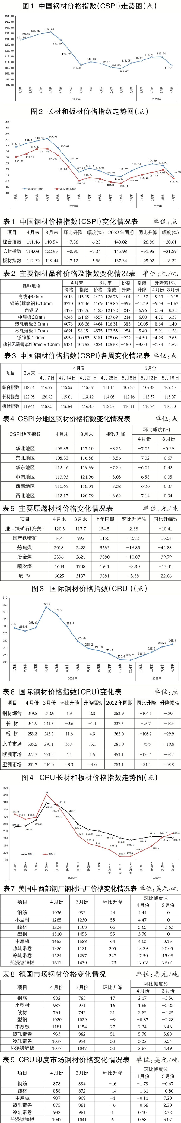 4月份,CSPI國內鋼材綜合指數呈波動下行走勢。其中,前三周小幅下降,第四周降幅較大。進入5月份以來,鋼材價格呈止跌企穩走勢。