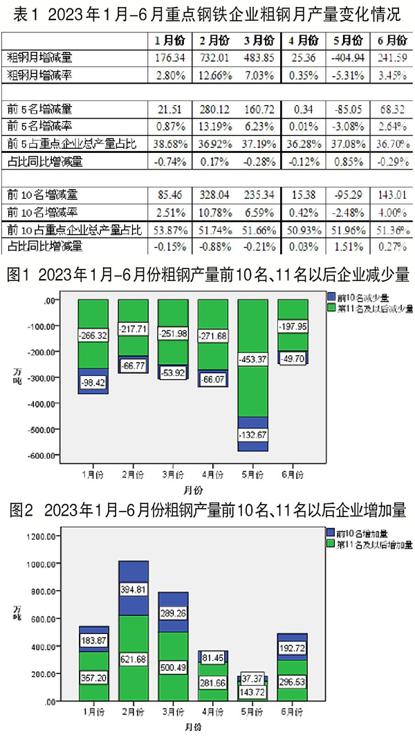 上半年,對於粗鋼月產量前10名及以後企業分別考察其減量、增量數據,從圖1可見,粗鋼產量的減少量多集中在11名及以後企業;從圖2可見,粗鋼產量的增加量也集中在11名及以後企業。