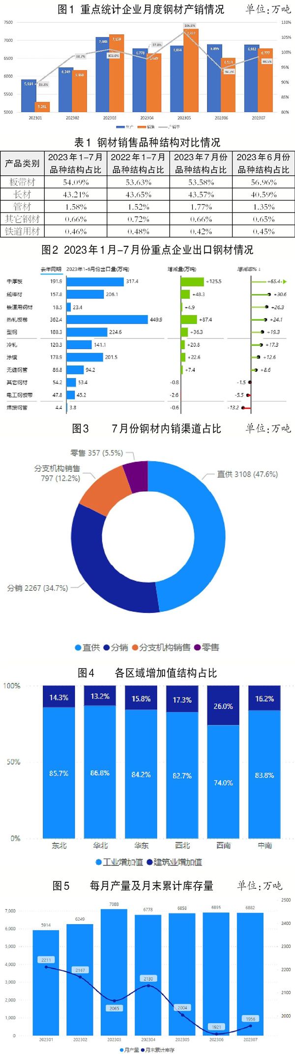 7月份重點統計鋼鐵企業鋼材產品營銷統計分析顯示:
