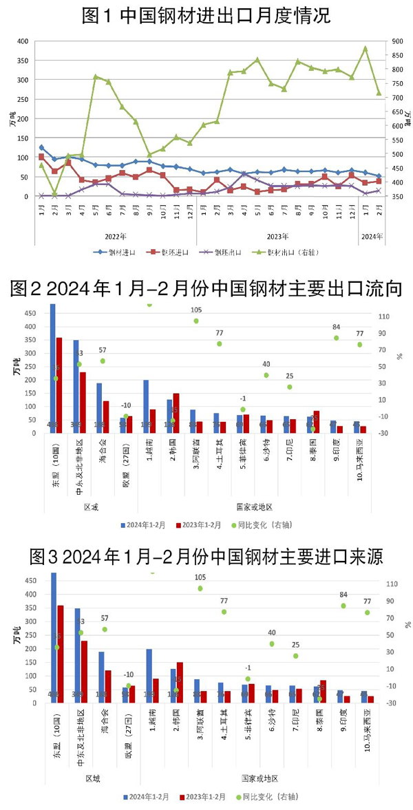 2024年nian以yi來lai,國guo內nei鋼gang鐵tie業ye受shou下xia遊you有you效xiao需xu求qiu不bu足zu及ji春chun節jie假jia期qi後hou需xu求qiu啟qi動dong緩huan慢man等deng因yin素su影ying響xiang,鋼gang材cai庫ku存cun增zeng加jia,價jia格ge承cheng壓ya下xia行xing,企qi業ye效xiao益yi下xia滑hua。而er境jing外wai鋼gang材cai價jia格ge表biao現xian相xiang對dui堅jian挺ting,我wo國guo企qi業ye出chu口kou動dong力li較jiao強qiang,進jin口kou需xu求qiu不bu足zu,鋼gang材cai進jin出chu口kou延yan續xu2023nianzoushi,chukoubaochigaowei,jinkouchixuhuiluo。xujingtideshi,youyuqianqigangcaitebieshizhongdiduanchanpinchukouliangdafuzengjia,muqianmaoyimocaanjianshuliangchengxianzengchangtaishi,chukouqiyeyaojiaqiangzilv,guifanchukouzhixu。
