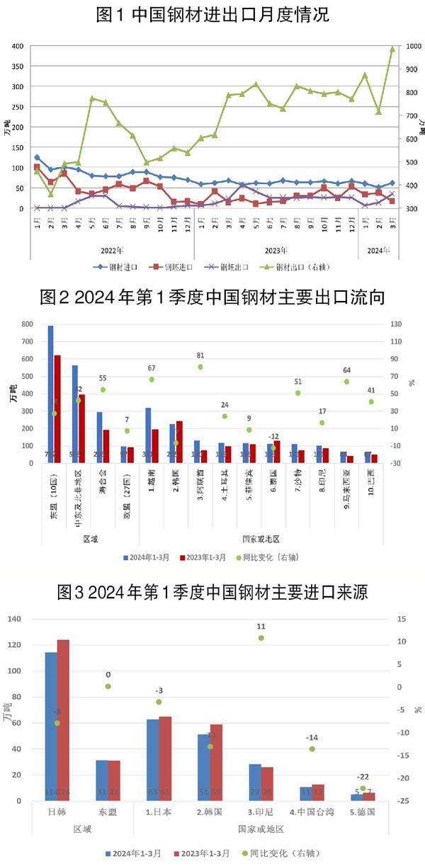 第1季ji度du,受shou建jian築zhu項xiang目mu啟qi動dong較jiao慢man影ying響xiang,國guo內nei鋼gang鐵tie需xu求qiu恢hui複fu緩huan慢man,盡jin管guan國guo內nei供gong給gei有you所suo回hui落luo,但dan鋼gang材cai市shi場chang仍reng麵mian臨lin階jie段duan性xing供gong需xu錯cuo配pei,導dao致zhi國guo內nei鋼gang材cai價jia格ge震zhen蕩dang下xia行xing。海hai內nei外wai價jia差cha保bao持chi高gao位wei,我wo國guo鋼gang材cai出chu口kou量liang持chi續xu攀pan升sheng,3月份出口規模逼近千萬噸,但是鋼材出口“量增價跌”態勢明顯。值得關注的是,在鋼材出口量大幅增加的同時,2023年至今我國鋼鐵產品已遭受貿易救濟調查共42起,特別是新興市場及發展中經濟體發起案件數量呈上升態勢。鋼企應理性對待出口,優化出口結構。