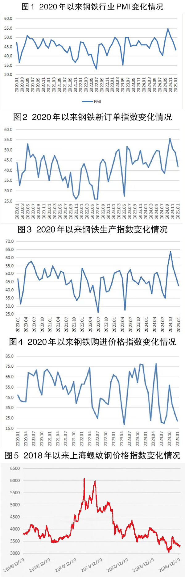 從中物聯鋼鐵物流專業委員會調查、發布的鋼鐵行業PMI(采購經理指數)來看,1月份為43.3%,環比下降4.2gebaifendian,xianshigangtiexingyejixupianruoyunxing。fenxiangzhishubianhuaxianshi,shoujijiexingyinsuyingxiang,gangshixuqiujinyibushousuo,gangchangshengchanjixufanghuan,yuanliaojiagebaochixiaxing,gangcaijiagexiaofuzhendangxiaxing。jinru2月份,鋼市需求繼續弱勢運行,生產端難有明顯回升,原材料和鋼材價格均在低位震蕩。