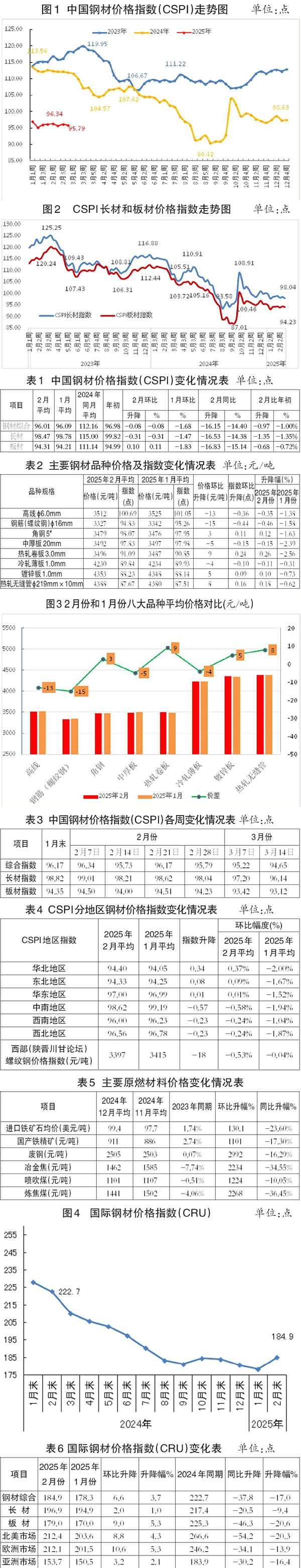 2月份,CRU國際鋼材價格指數為184.9點,環比上升6.6點、升幅為3.7%,同比下降37.8點、降幅為17.0%。