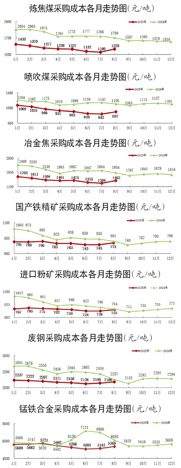 8月份“對標挖潛”企業各品種采購成本均環比增長