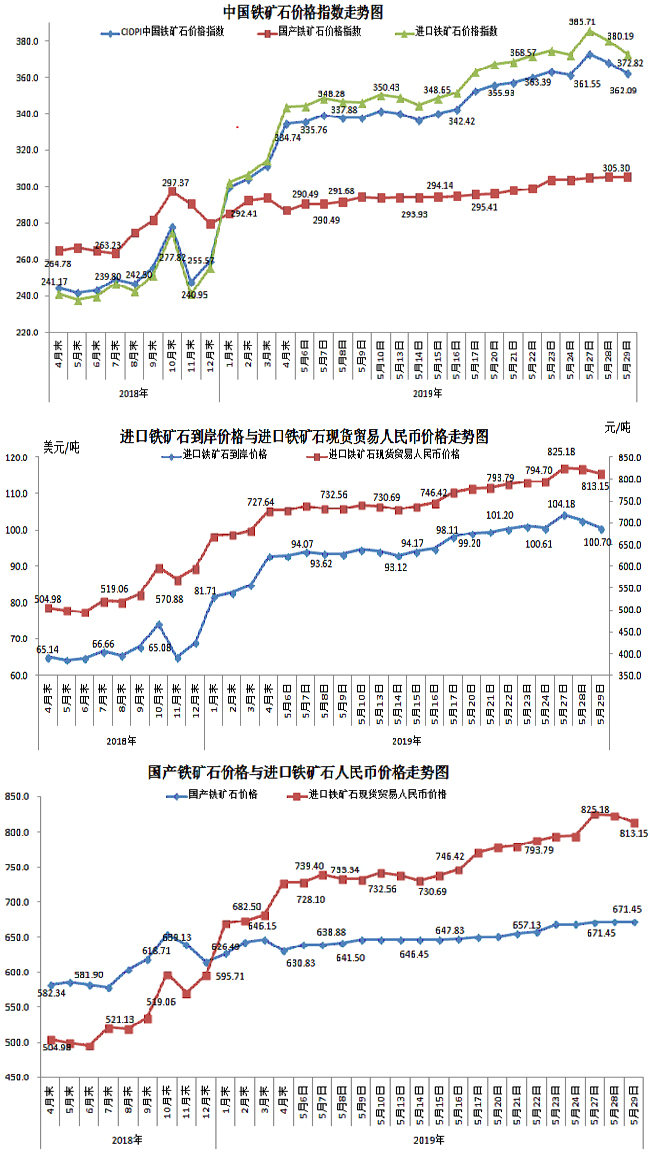 5月29日,中國鐵礦石價格指數(CIOPI)362.09點,環比下降6.20點,降幅為1.68%。其中:國產鐵礦石價格指數為305.30點,環比持平;進口鐵礦石價格指數為372.82點,環比下降7.37點,降幅為1.94%。