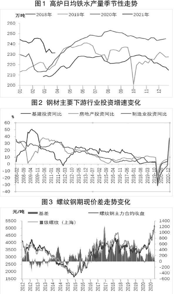 今年在就地過年政策的影響下,春節期間鋼廠減產檢修預期被證偽,1月~2月份粗鋼產量同比增長12.9%,日均產量較去年12月份回升2.24萬噸。今年3月份之後,河北省唐山市采取了較為嚴格的限產政策,隨後高爐日均鐵水產量出現了連續3周的下降。目前河北省唐山市的限產政策還在持續,3月19日,河北省唐山市政府公布了《關於唐山市鋼鐵行業企業限產減排措施的通知》,要求之前違規的7家鋼鐵企業3月20日~6月30日限產50%,7月1日~12月31日限產30%;其餘16家企業3月20日~12月31日限產30%,預計將影響鐵水產量2839萬噸,折算全年為2976萬噸,為河北省唐山市2020年生鐵產量的22.38%。同時,4月初,國家發改委和工信部就2021年鋼鐵去產能回頭看以及粗鋼產量壓減工作進行部署,而全國性的《鋼鐵行業碳達峰及降碳行動方案》也(ye)正(zheng)在(zai)製(zhi)訂(ding)中(zhong),因(yin)此(ci)筆(bi)者(zhe)預(yu)計(ji)後(hou)期(qi)環(huan)保(bao)限(xian)產(chan)政(zheng)策(ce)有(you)可(ke)能(neng)擴(kuo)展(zhan)到(dao)其(qi)他(ta)地(di)區(qu),而(er)且(qie)今(jin)年(nian)在(zai)碳(tan)中(zhong)和(he)背(bei)景(jing)下(xia),鋼(gang)材(cai)供(gong)給(gei)中(zhong)期(qi)收(shou)縮(suo)預(yu)期(qi)將(jiang)一(yi)直(zhi)存(cun)在(zai)。