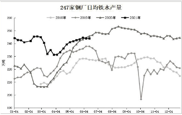 需求端,上周,247家鋼廠日均鐵水產量為244.01萬噸,環比微幅下降0.05萬噸,總體處於相對高位水平。不過,河北省環保限產政策進一步加嚴。其中,河北省邯鄲市對鋼鐵行業加強管控,管控時間為6月19日至6月30日。如今,河北省峰峰礦區、武安市、永年區、涉縣4個縣(市、區)所有燒結機在現有管控措施基礎上生產負荷再減30%,所有鋼鐵企業有一座高爐燜爐(此前對高爐沒有政策限製),如果隻有單座高爐的企業無法燜爐,就在原管控措施基礎上燒結機生產負荷再減10%。據了解,截至6月21日,河北省邯鄲市高爐開工率從6月17日的82%下降至70%左右,當地焦炭需求明顯下降。