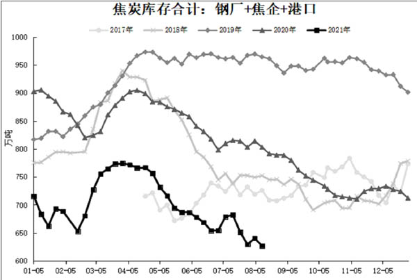 kucunfangmian,suiranjinqijiaotangongxuliangduanjunyouxiajiang,youqixuqiuhuiluofudumingxian,danjiaotanshangweixingchengyouxiaoleikuqushi,qierengzaiqukucun。shangzhou,jiaotanyangbenzongkucunwei626.77萬噸,環比減少13.61萬噸,同比減少176.15萬噸。分結構來看,焦企內焦炭庫存基本處於往年同期水平,庫存壓力不大;鋼廠焦炭庫存連續多周下降,處於中低位水平;港口焦炭庫存在曆史低位波動,期現套利空間不大,貿易商集港情緒不高。焦炭的低庫存狀態仍對焦價形成一定支撐。數據方麵,100家獨立焦化廠樣本焦炭庫存為33.63萬噸,環比減少1.14萬噸,同比減少4.31萬噸;110家鋼廠樣本焦炭庫存為423.04萬噸,環比減少3.97萬噸,同比減少68.94萬噸;港口庫存為170.1萬噸,環比減少8.5萬噸,同比減少108.4萬噸。