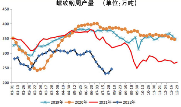 受虧損影響,鋼廠在過去一段時間內產量持續下滑,螺紋鋼產量連續6周下降,最低跌至230.29萬噸/周,創今年初以來的產量新低,也是近幾年的最低水平(見圖)。此後,由於廢鋼價格跌幅較大,電弧爐率先迎來利潤拐點。截至8月3日,獨立電弧爐鋼廠噸鋼平均成本為4144元、平均利潤為92元、穀電利潤為199元。在利潤驅使下,電弧爐鋼廠生產積極性大幅提高,7月29日—8月4日當周,全國85家獨立電弧爐鋼廠平均開工率為56.34%,周環比上升7.25%,月環比上升13.99%;產能利用率為42.91%,周環比上升5.31%,月環比上升11.24%。長流程鋼廠實現了部分利潤改善,其產量也在上周企穩反彈。7月28日—8月3日當周,螺紋鋼總產量為245.59萬噸,周環比上升13.22萬噸,同比下降72.4萬噸。長流程鋼廠產量中,增產部分所占比重為4.54%;短流程鋼廠產量中,增產部分所占比重為12.56%。zheshuomingjinguanduanliuchenggangchangzengliangjueduizhidiyuchangliuchenggangchangzengliang,danshangshengqushiqiangyuchangliuchenggangchang。jinguangangchangfuchanyuqizengqiang,danjianyumuqianrengchuyuxuqiudanji,qieshangzhoufeigangdezhangshichaoguoluowengang,daozhidianhulugangchanglirunshouzhai。yinci,bizherenwei,gangchangfuchanjiezouyujijianghuijiaopingwen。