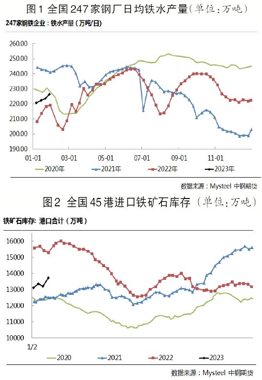春節期間,國內鐵礦石現貨、遠期現貨市場成交均停滯,海外鐵礦石掉期價格波動較窄。截至1月26日,2月份鐵礦石掉期價格較節前上漲2.35美元/噸。國內鋼廠以消耗廠內庫存為主,鋼廠進口礦庫存下降幅度略大於2022年農曆春節期間;海外進口礦到港量小幅回升,港口疏港量季節性下滑至低位,港口進口礦庫存累積速度超預期;shougangcaixianshixuqiupianruojigangchanglirunzhengtipiandideyingxiang,gangchangshengtiechanliangweichidiwei。chunjieqijianhongguanfangdichanzhengcechixufangsong,quanguoduodiqubanbutigaoduohaijiatinggongjijindaikuanedu、下調首付比例及放鬆限購等措施,支持房地產市場需求回暖,終端需求預期向好。