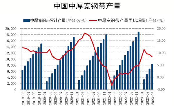 第di二er季ji度du,由you於yu需xu求qiu不bu及ji預yu期qi,鋼gang材cai生sheng產chan利li潤run處chu於yu低di位wei,但dan在zai不bu同tong品pin種zhong間jian有you所suo分fen化hua。根gen據ju筆bi者zhe的de計ji算suan,螺luo紋wen鋼gang處chu於yu虧kui損sun狀zhuang態tai,熱re軋zha卷juan板ban微wei盈ying利li。由you於yu部bu分fen鋼gang廠chang可ke以yi根gen據ju不bu同tong鋼gang種zhong之zhi間jian的de利li潤run調tiao整zheng產chan量liang,產chan量liang也ye有you所suo分fen化hua。國guo家jia統tong計ji局ju最zui新xin數shu據ju顯xian示shi,5月份,全國鋼筋產量為1992.9萬噸,同比下降8.8%;中厚寬鋼帶產量為1787.8萬噸,同比增長5.6%。1月—5月份,全國鋼筋累計產量為9693.7萬噸,同比下降0.9%;中厚寬鋼帶累計產量為8342.7萬噸,同比增長8.4%。熱軋卷板期貨標準為部分中厚寬鋼帶,螺紋鋼期貨標準為部分鋼筋。