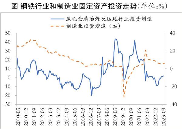 2024年粗鋼產量預計相比2023年將回落1130噸,約為10.19億噸。一方麵,受需求和利潤大周期下行影響,鋼鐵行業投資增速明顯放緩。2023年前10個月,黑色金屬冶煉及壓延行業投資同比增速僅為1.9%,遠低於製造業投資6.2%的增速,且這一態勢已經持續近兩年。另一方麵,受高供應影響,2023年第4季度之後,長流程鋼廠再度陷入持續虧損狀態。如果這一趨勢持續,大概率會進一步壓低鋼材的產能利用率。