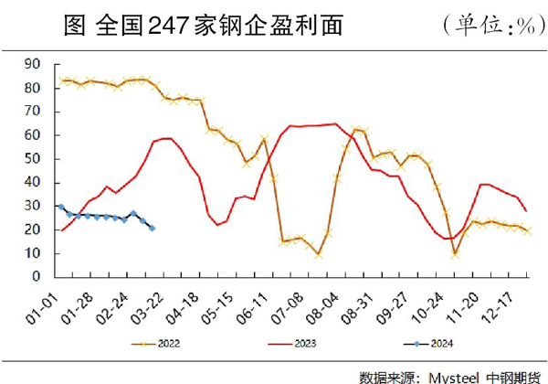 全quan國guo兩liang會hui釋shi放fang出chu的de政zheng策ce信xin號hao偏pian積ji極ji,但dan並bing未wei超chao出chu市shi場chang預yu期qi,宏hong觀guan麵mian相xiang對dui平ping穩wen,市shi場chang運yun行xing邏luo輯ji逐zhu步bu回hui歸gui經jing濟ji基ji本ben麵mian現xian實shi。據ju相xiang關guan資zi訊xun機ji構gou調tiao研yan,截jie至zhi3月12日,全國10094個工地開(複)工率為75.4%,同比(農曆)下降10.7個百分點;勞務上工率為72.4%,同比(農曆)下降11.5個百分點;資金到位率為47.7%,環比增加3個百分點。從相關機構調研數據來看,目前工地開(複)工率及勞務上工率均明顯低於去年農曆同期水平,鋼材下遊需求整體偏弱。