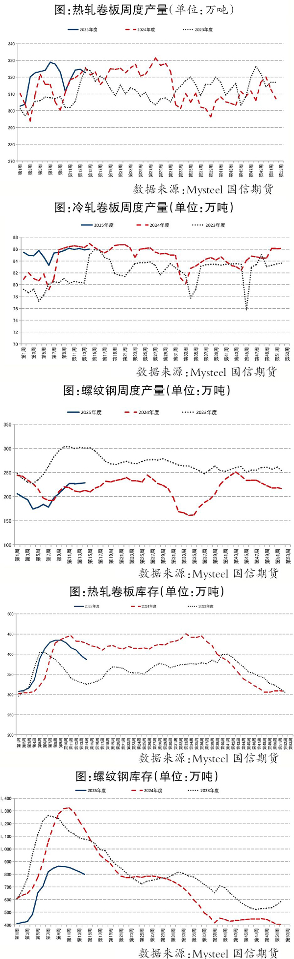 螺luo紋wen鋼gang產chan量liang在zai春chun節jie前qian主zhu動dong減jian產chan,維wei持chi較jiao低di庫ku存cun,春chun節jie期qi間jian螺luo紋wen鋼gang庫ku存cun處chu於yu近jin幾ji年nian同tong期qi低di位wei。隨sui著zhe螺luo紋wen鋼gang產chan量liang回hui升sheng,鋼gang材cai產chan量liang超chao過guo去qu年nian同tong期qi,考kao驗yan終zhong端duan需xu求qiu。