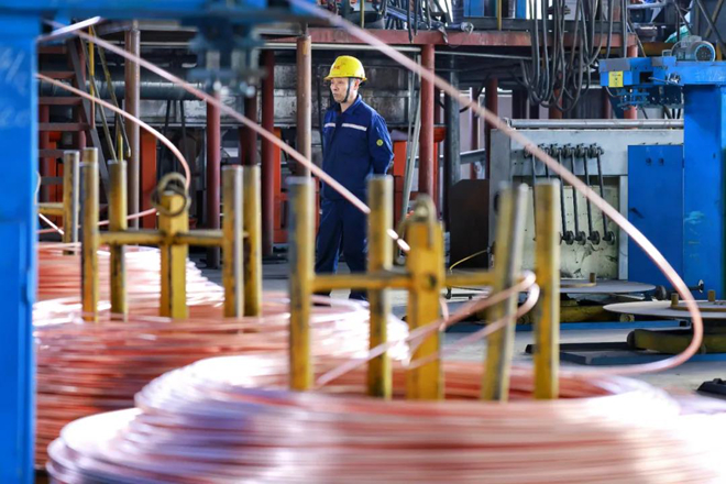 湖北皓潤本次的保供任務是交付1500噸無氧銅,北廠區上引車間裏6條生產線同時滿負荷運轉,該片區負責人袁波波帶隊深入生產現場,確保節日期間隨時解決問題。