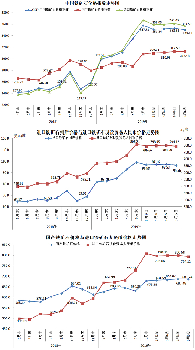 6月6日,中國鐵礦石價格指數(CIOPI)350.34點,環比下降3.04點,降幅為0.86%。其中:國產鐵礦石價格指數為312.48點,環比下降0.11點,降幅為0.03%;進口鐵礦石價格指數為357.50點,環比下降3.59點,降幅為0.99%。