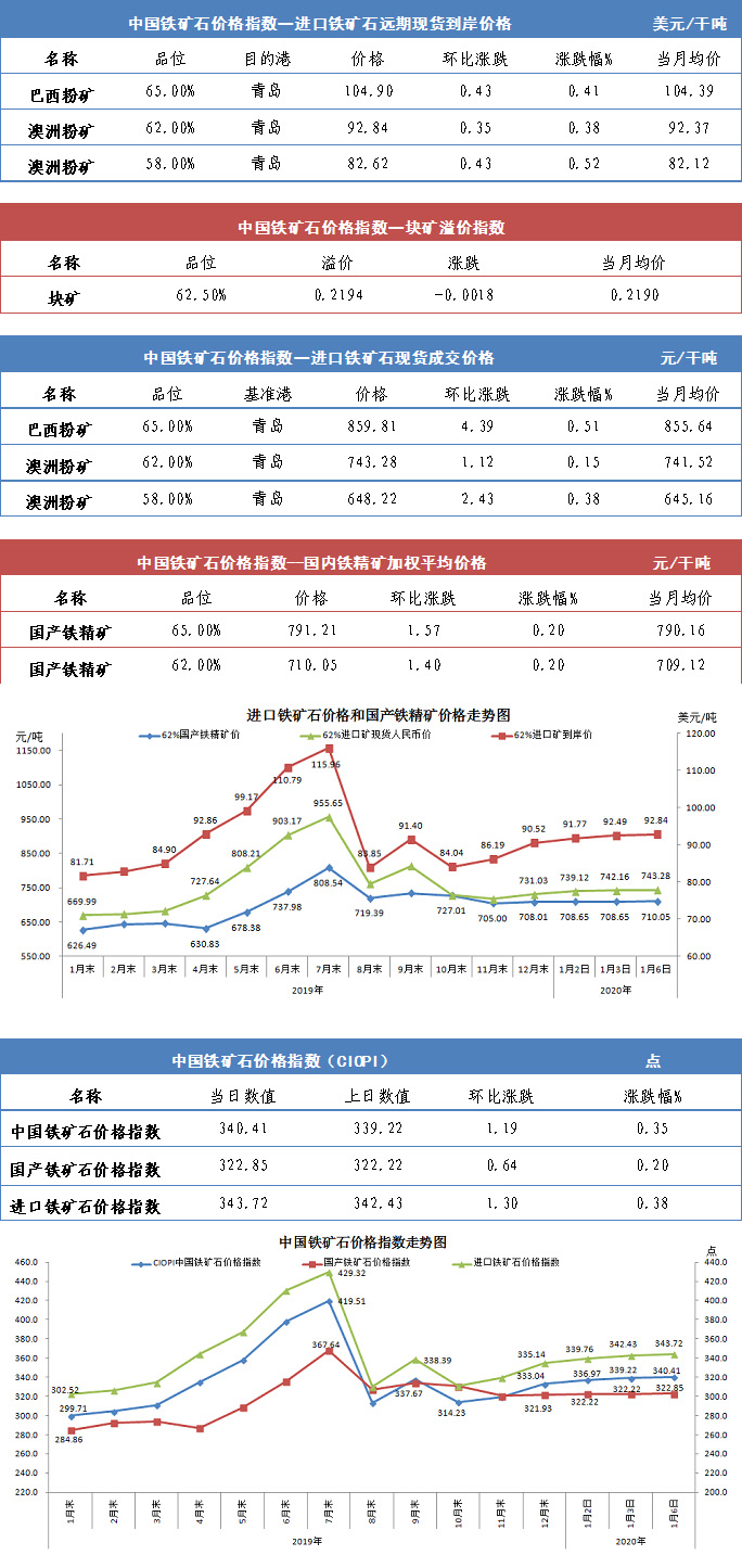 【行業指數】1月6日中國鐵礦石價格指數