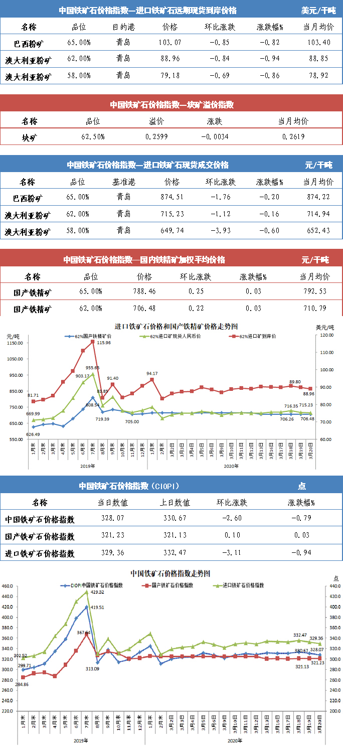 【行業指數】3月20日中國鐵礦石價格指數