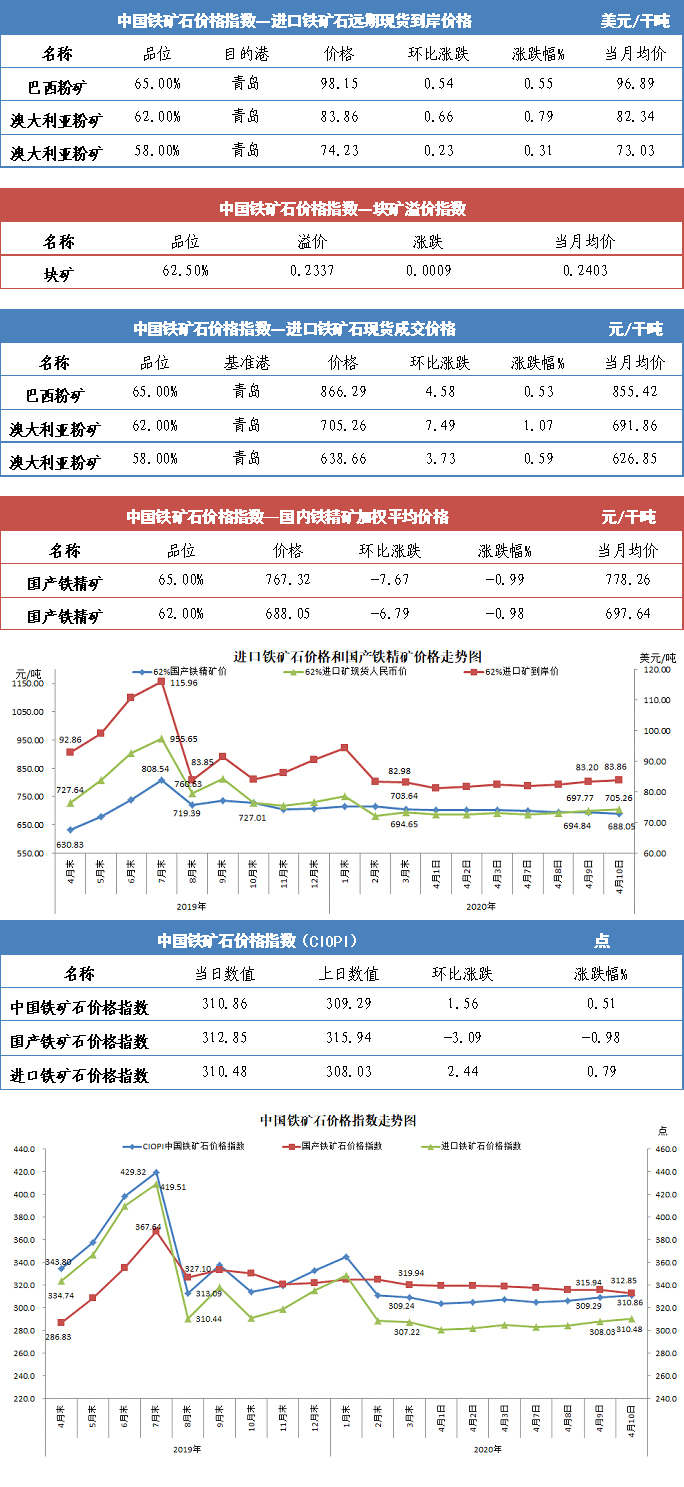 【行業指數】4月10日中國鐵礦石價格指數