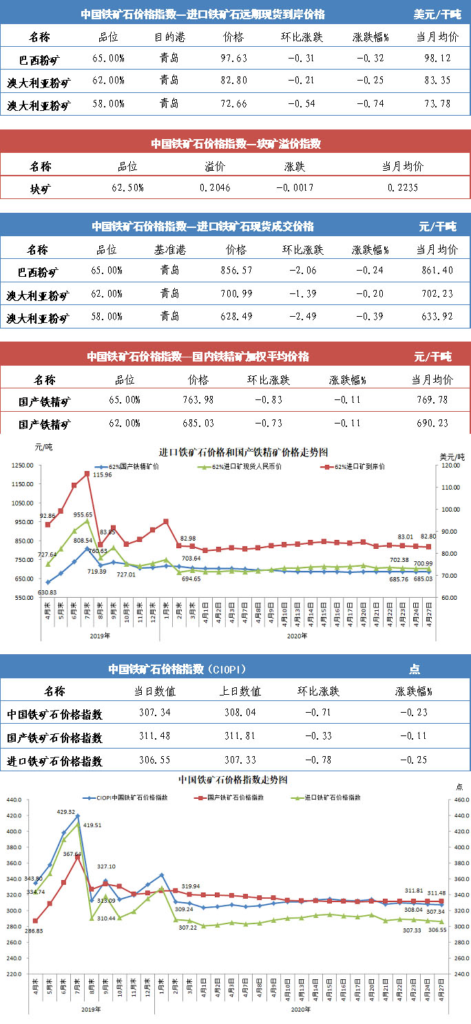 【行業指數】4月27日中國鐵礦石價格指數