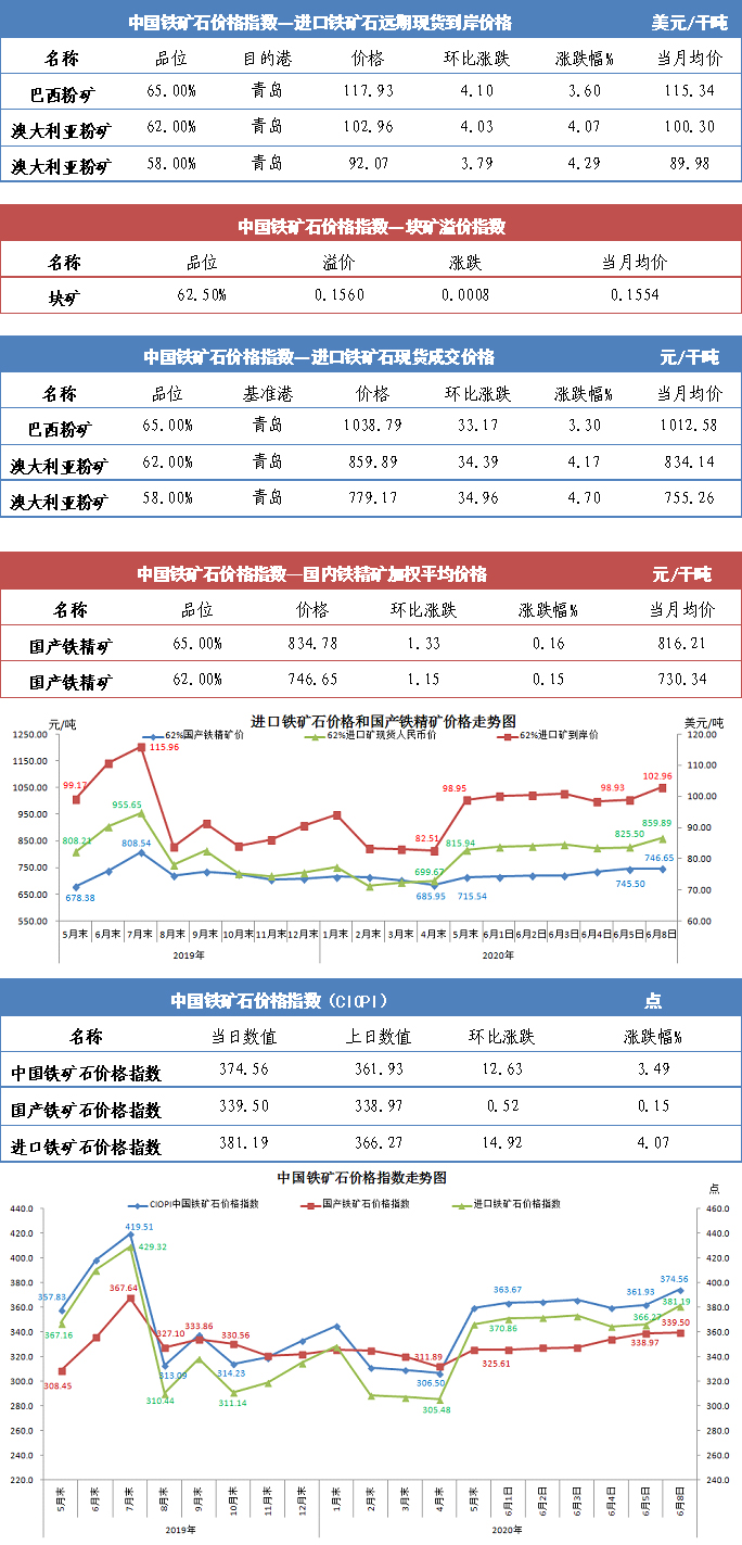【行業指數】6月8日中國鐵礦石價格指數