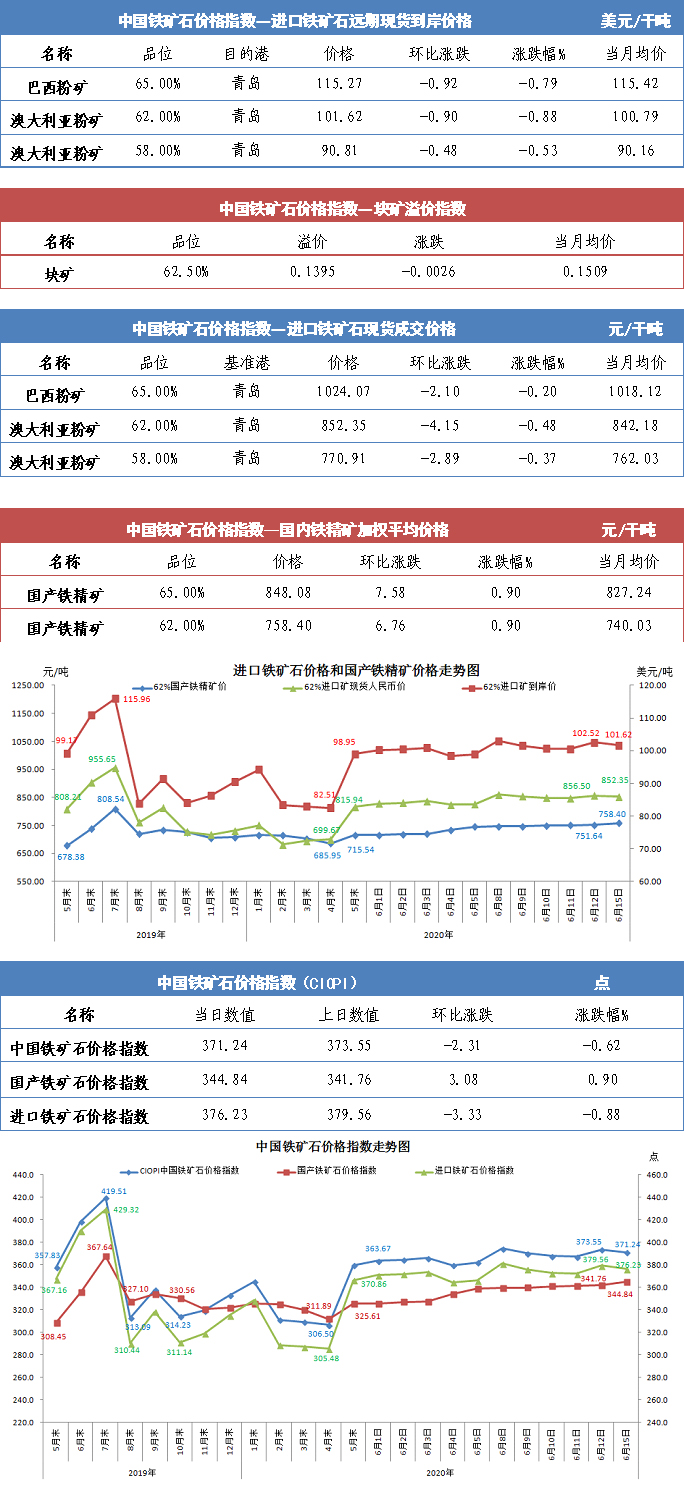 【行業指數】6月15日中國鐵礦石價格指數