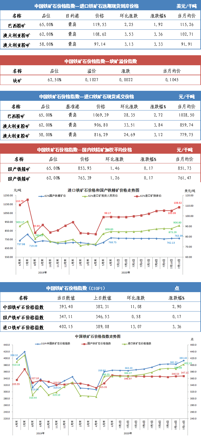 【行業指數】7月13日中國鐵礦石價格指數
