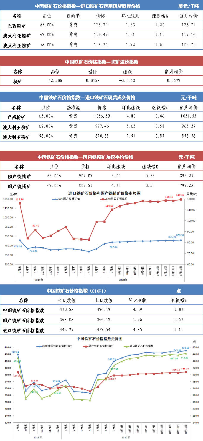 【行業指數】8月13日中國鐵礦石價格指數