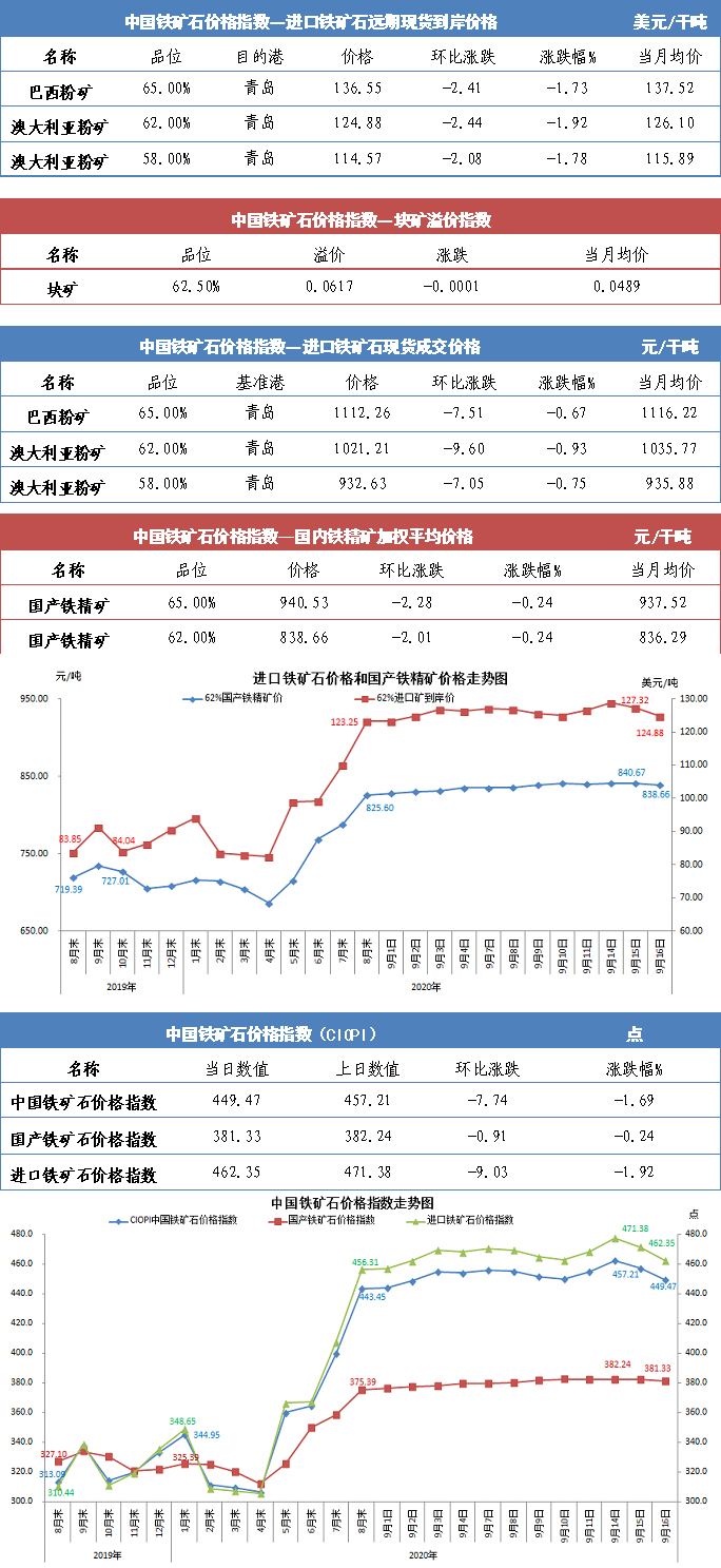 【行業指數】9月16日中國鐵礦石價格指數