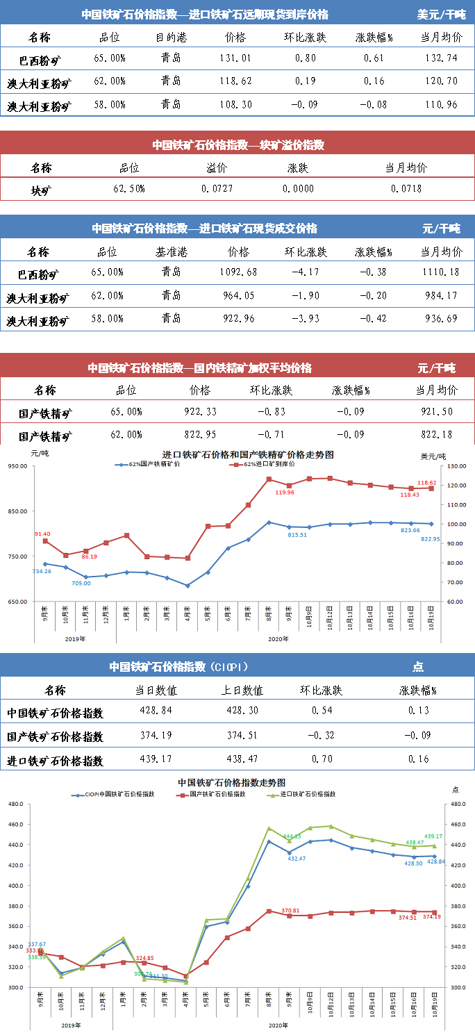 【行業指數】10月19日中國鐵礦石價格指數