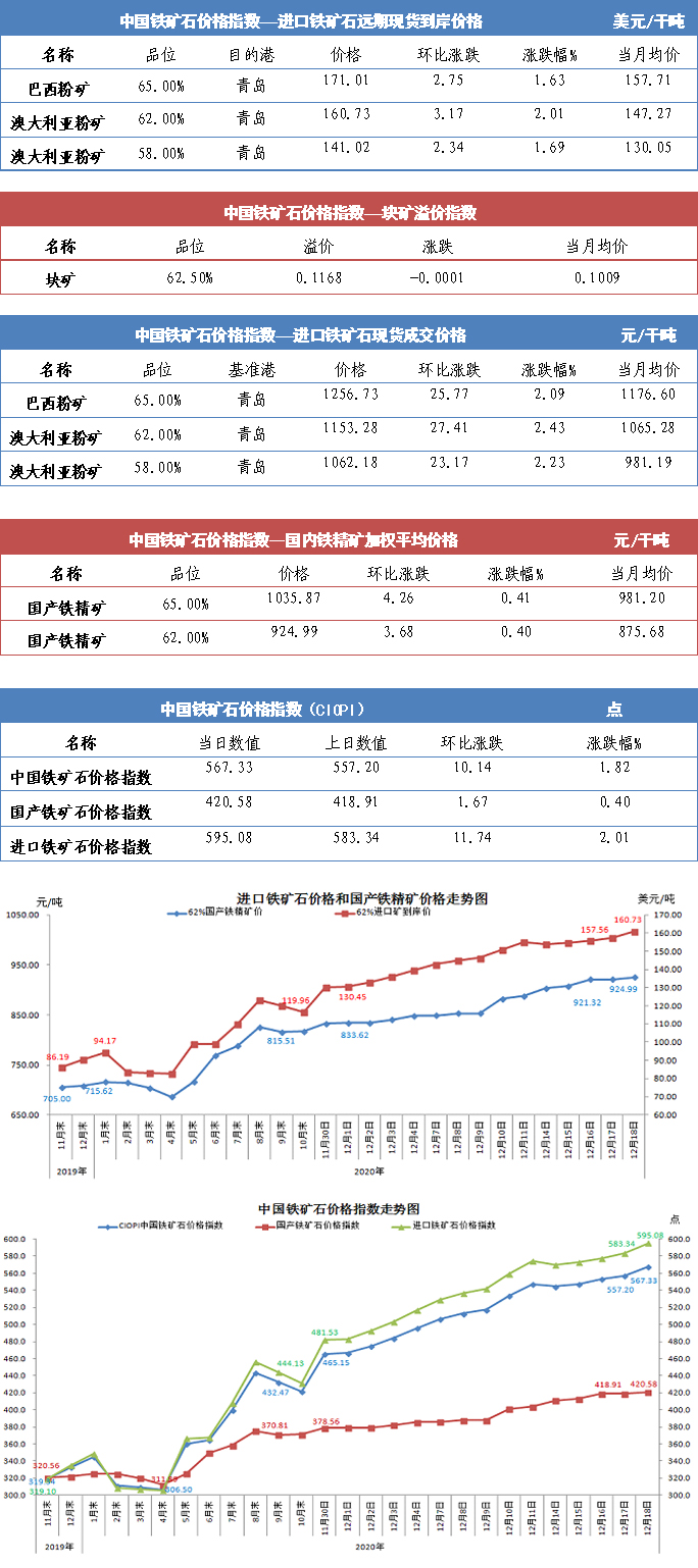 【行業指數】12月18日中國鐵礦石價格指數