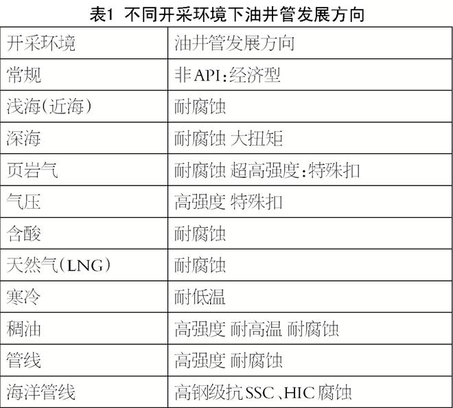 從表1可(ke)以(yi)看(kan)出(chu),油(you)井(jing)管(guan)的(de)主(zhu)要(yao)發(fa)展(zhan)方(fang)向(xiang)是(shi)耐(nai)腐(fu)蝕(shi),可(ke)見(jian)不(bu)鏽(xiu)鋼(gang)管(guan)隨(sui)著(zhe)開(kai)采(cai)環(huan)境(jing)的(de)逐(zhu)漸(jian)惡(e)劣(lie),其(qi)用(yong)量(liang)將(jiang)加(jia)大(da)。其(qi)他(ta)許(xu)多(duo)工(gong)業(ye)行(xing)業(ye)也(ye)有(you)這(zhe)種(zhong)趨(qu)勢(shi)。