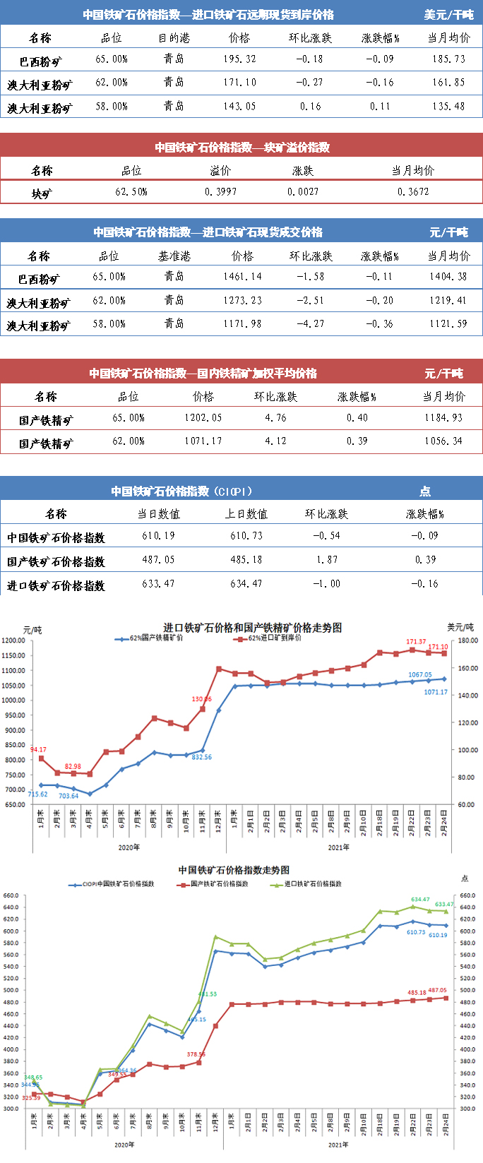 【行業指數】2月24日中國鐵礦石價格指數