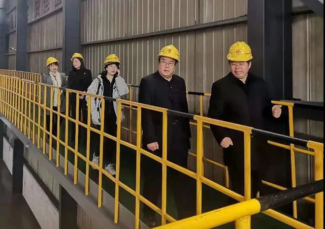 《鋼鐵脊梁》攝製項目組一行還參觀了共昌軋輥ESP(無頭連鑄連軋)精品軋輥生產線、高端微通道鋁扁管及電工鋁杆係列產品生產線等項目。