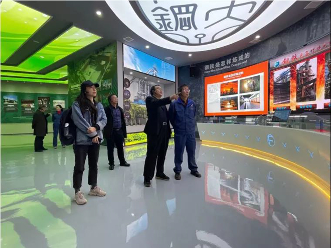 前采期間,在詹柏丹和常健的陪同下,《鋼鐵脊梁》攝製項目組一行先後前往企業文化展示館、軋鋼廠彈扁生產線、煉鋼廠班組休息室、焦化廠濕地景觀、方大長力生產現場進行實地參觀調研,詳細了解方大鋼鐵綠色發展、工藝進步、產業鏈協同發展等相關工作情況。