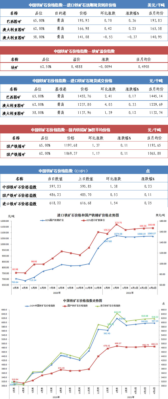 【行業指數】4月6日中國鐵礦石價格指數