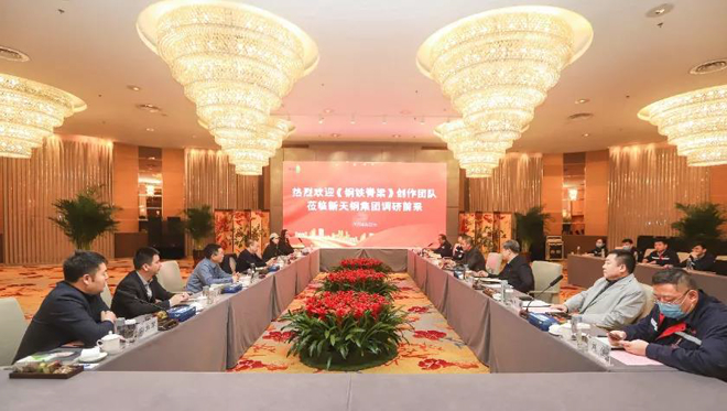 4月2日,中宣部建黨百年重磅紀錄片《鋼鐵脊梁》攝製項目組一行到新天鋼集團進行前采。