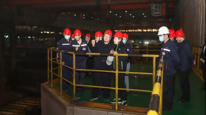 前采期間,在闞永海的陪同下,《鋼鐵脊梁》攝製項目組一行參觀了天鋼公司3200m³高爐、中厚板廠生產車間、文化展廳。在新天鋼集團工業互聯網運行中心,觀看了企業宣傳片,了解了通過反映實時真實數據“內部對標找差距、通過差距找問題”的“數字新天鋼”發展理念。