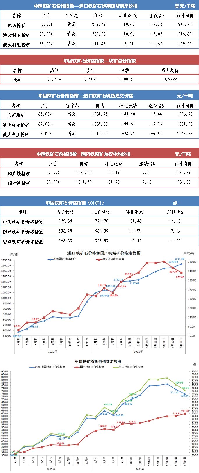 【行業指數】5月14日中國鐵礦石價格指數
